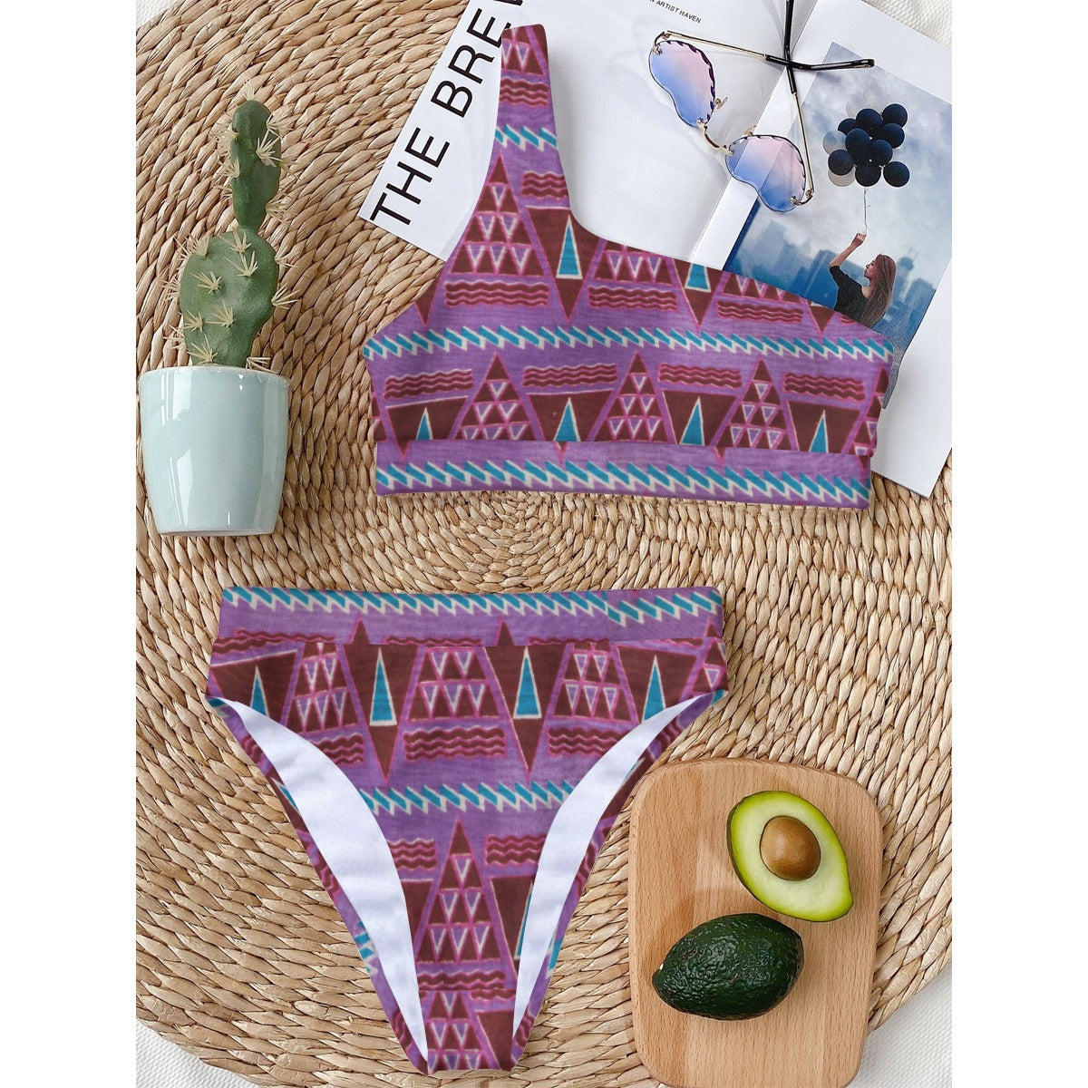 The cool bikini suit in summer, with one shoulder design, soft fabric and elastic band, can fit the skin well.