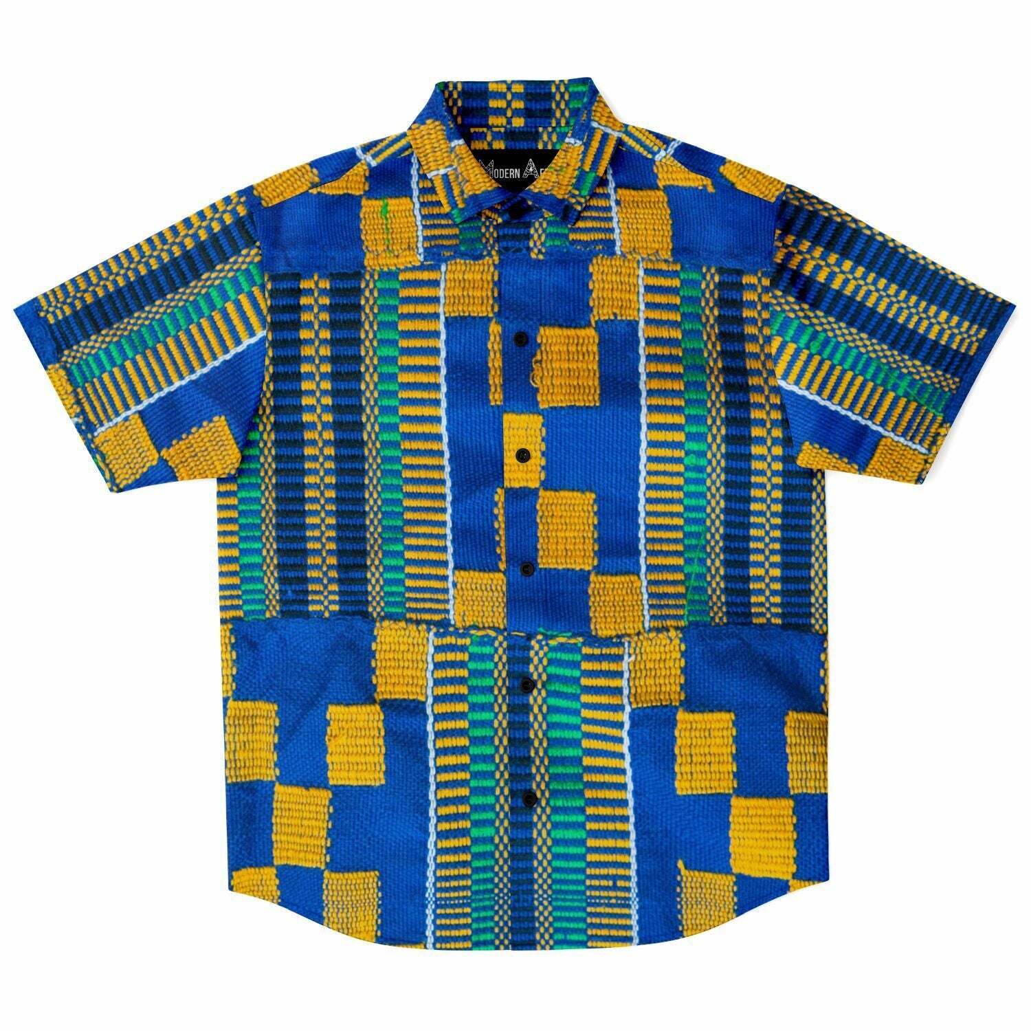 Blue Yellow Kente Short Sleeve Shirt