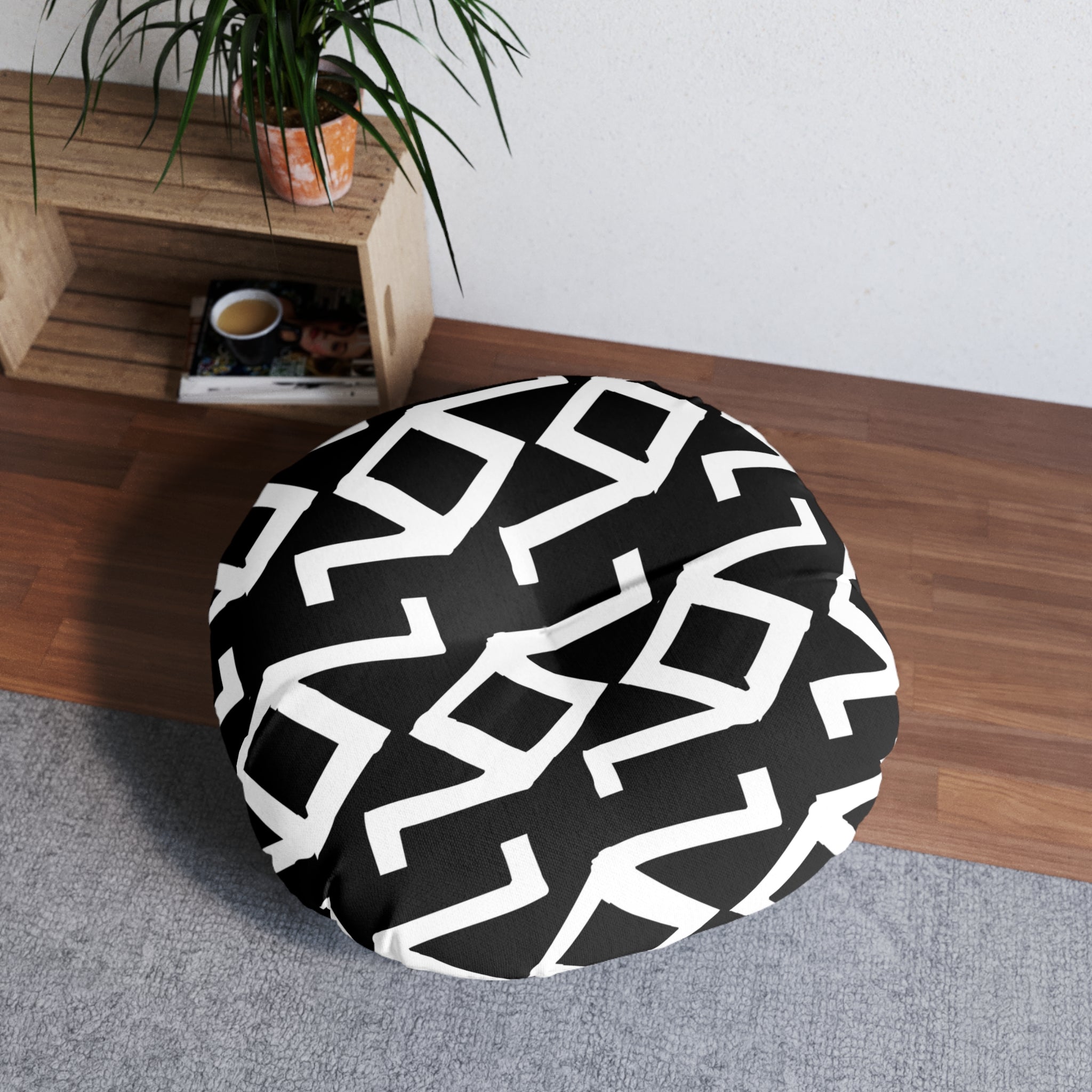 Add a custom touch to any resting area around the house with a round tufted floor pillow, which has a white stitching in the middle, that features your custom ideas. Shipped with its own filling, this floor pillow is as comfy as it is stylish. Bring it to life by adding custom artwork or catchy slogans.