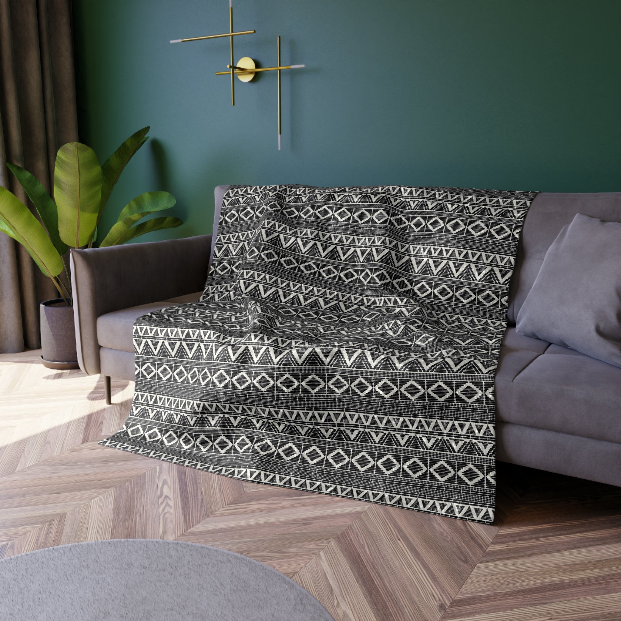 Super soft, super comfy—this crushed velvet blanket with an original custom design will be the perfect addition to the living room couch. It's made from high-quality, durable 100% polyester fabric with zig-zag stitches on its edges.