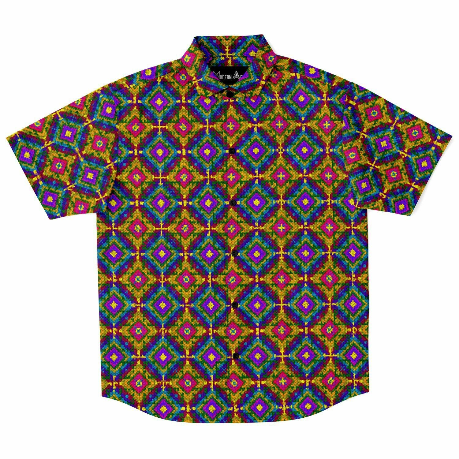 Stay cool with this fun printed short sleeve button down shirt. It comes in a regular width...