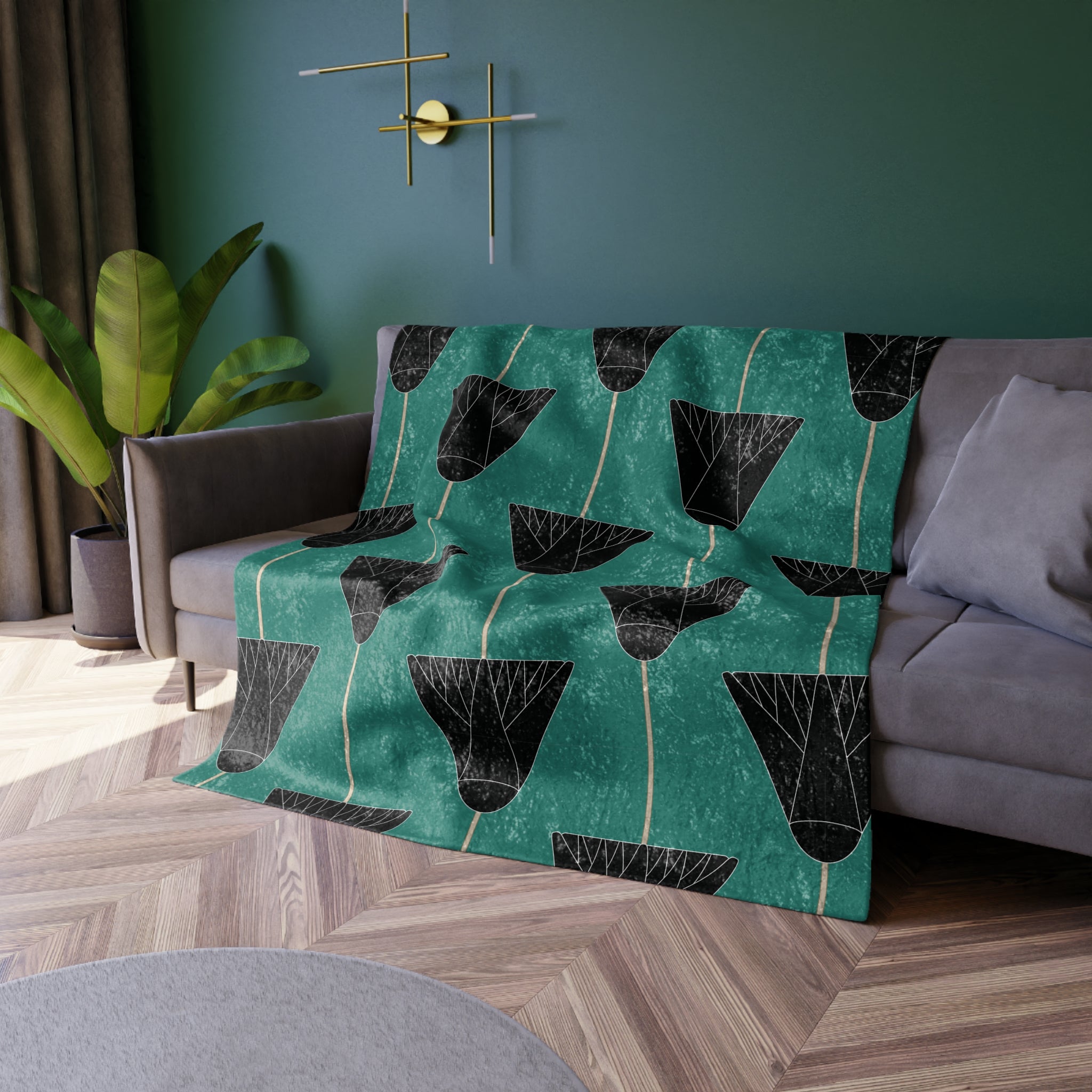 Super soft, super comfy—this crushed velvet blanket with an original custom design will be the perfect addition to the living room couch. It's made from high-quality, durable 100% polyester fabric with zig-zag stitches on its edges.